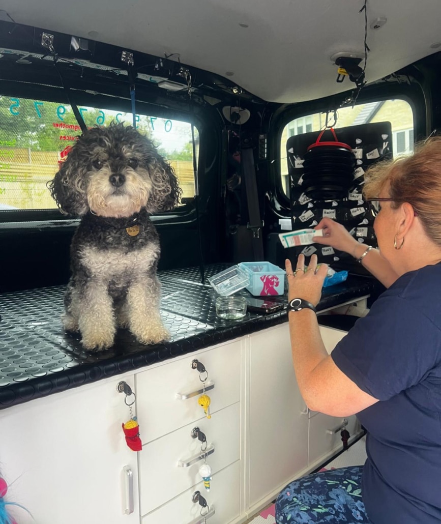 Hazel runs a thriving mobile business offering dog walking, home visits, teeth cleaning, and nail trimming within a 10-mile radius of her home in Heanor, Derbyshire.